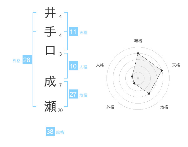 井手口 成瀬さんの総格は38画の4点!
