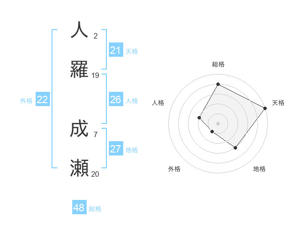 人羅 成瀬さんの天格は21画の5点!