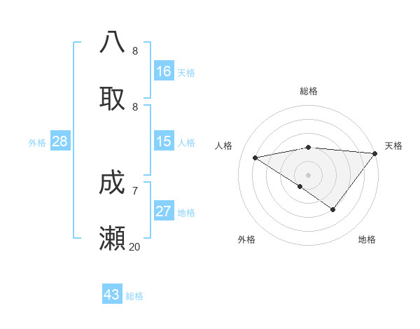 八取 成瀬さんを姓名の画数から五運を鑑定