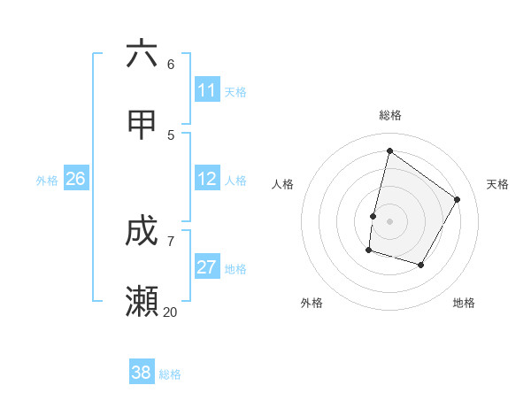 六甲 成瀬さんの総格は38画の4点!