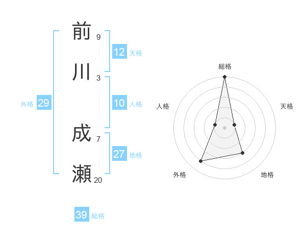 前川 成瀬さんを姓名の画数から五運を鑑定