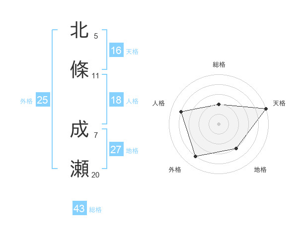 北條 成瀬さんを姓名の画数から五運を鑑定