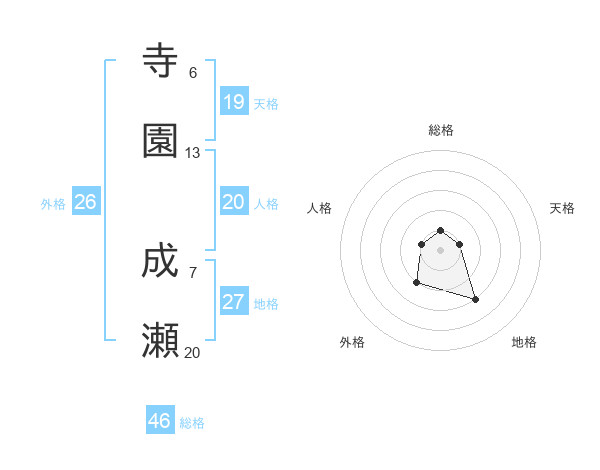 寺園 成瀬さんを姓名の画数から五運を鑑定