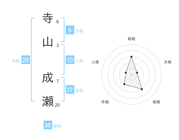 寺山 成瀬さんの地格は27画の3点!