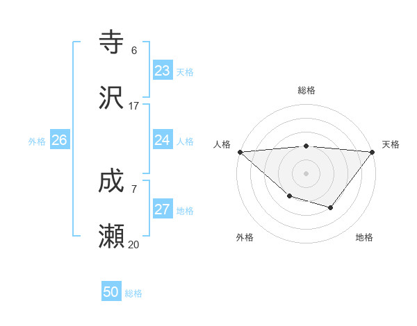寺沢 成瀬さんの外格は26画の2点!