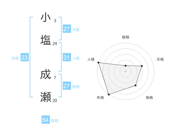 小塩 成瀬さんの地格は27画の3点!
