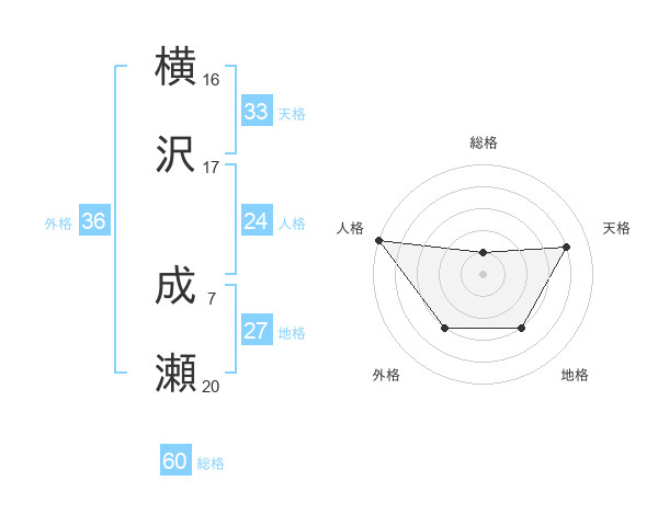 横沢 成瀬さんを姓名の画数から五運を鑑定