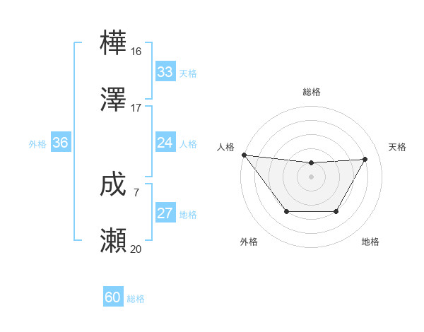 樺澤 成瀬さんの総格は60画の1点!