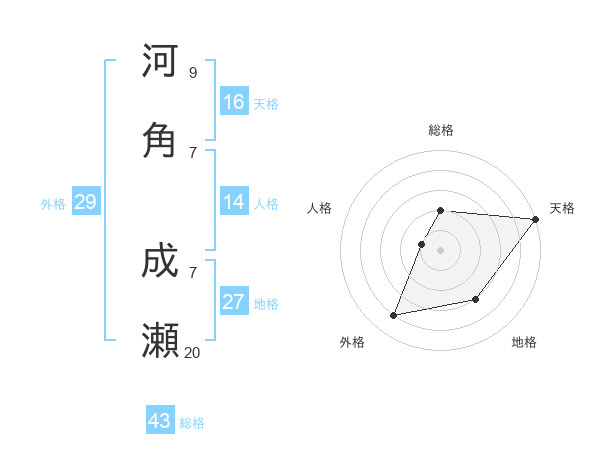 河角 成瀬さんを姓名の画数から五運を鑑定