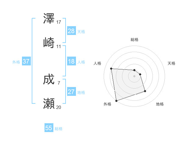 澤崎 成瀬さんを姓名の画数から五運を鑑定
