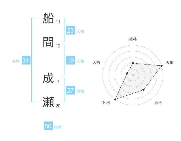 船間 成瀬さんを姓名の画数から五運を鑑定