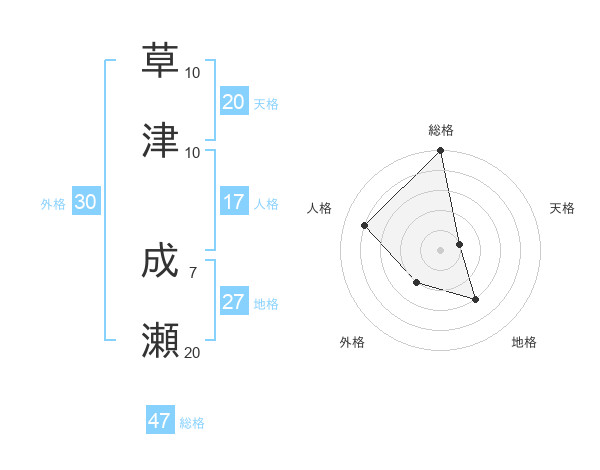 草津 成瀬さんを姓名の画数から五運を鑑定