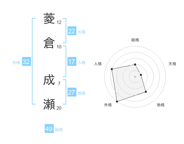 菱倉 成瀬さんの総格は49画の2点!