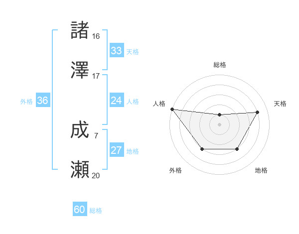 諸澤 成瀬さんの総格は60画の1点!