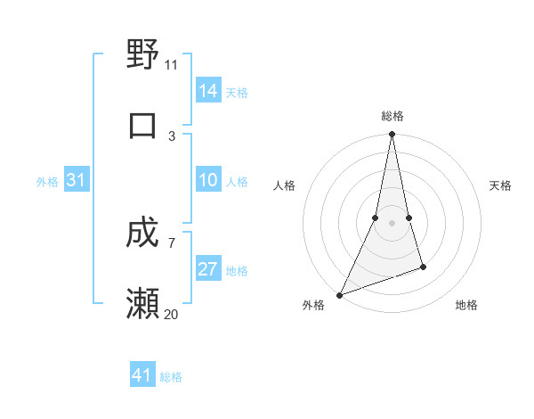 野口 成瀬さんの総格は41画の5点!
