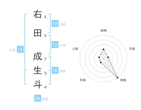 右田 成生斗さんを姓名の画数から五運を鑑定