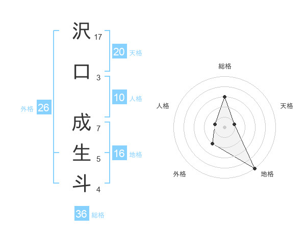 沢口 成生斗さんの天格は20画の1点!