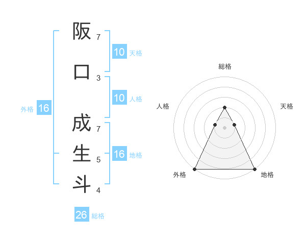 阪口 成生斗さんの総格は26画の2点!