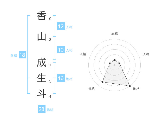 香山 成生斗さんを姓名の画数から五運を鑑定