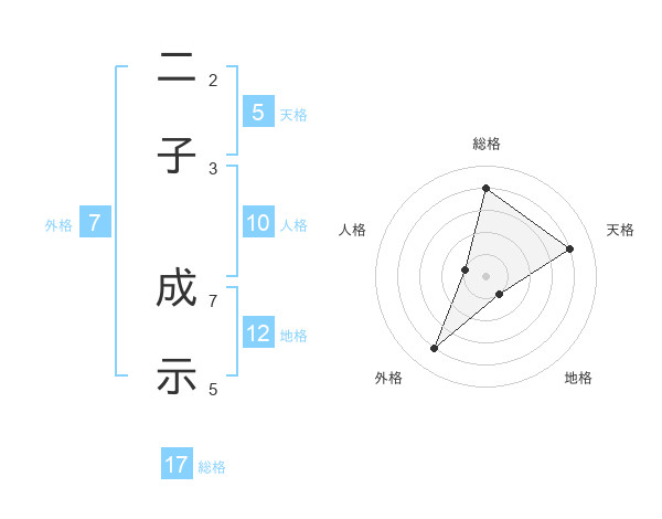 二子 成示さんの天格は5画の4点!