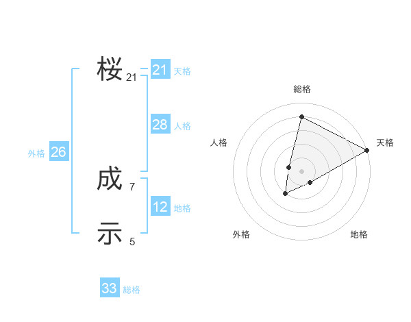桜 成示さんの天格は21画の5点!