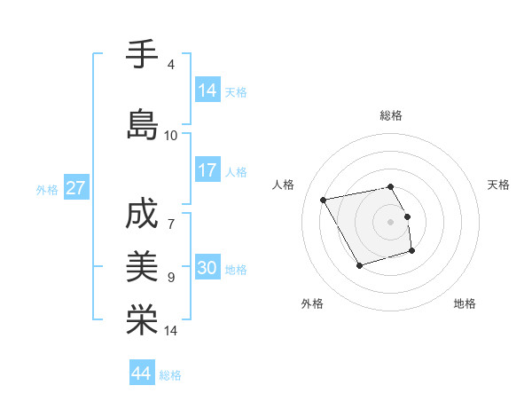 手島 成美栄さんを姓名の画数から五運を鑑定
