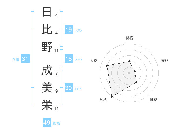 日比野 成美栄さんを姓名の画数から五運を鑑定