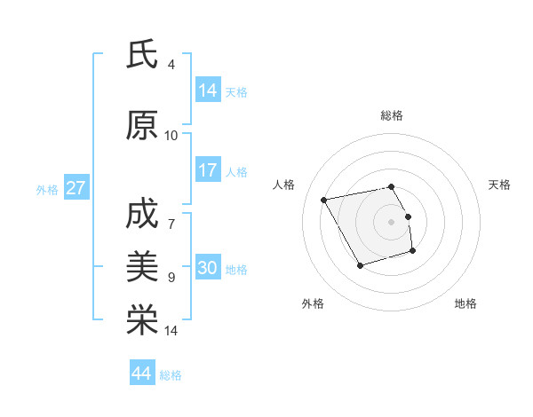 氏原 成美栄さんを姓名の画数から五運を鑑定