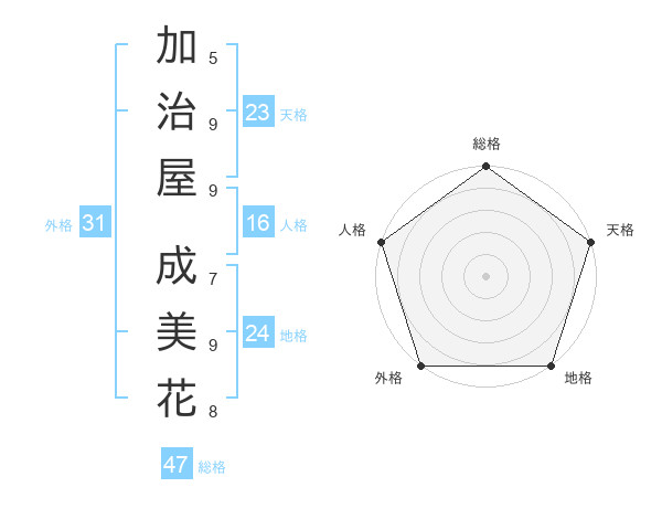 加治屋 成美花さんの総格は47画の5点