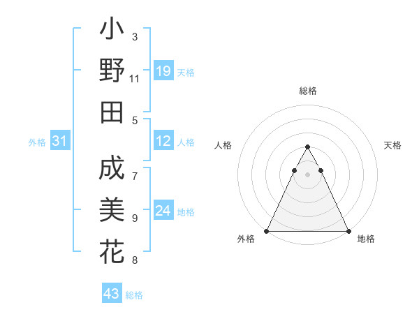 小野田 成美花さんを姓名の画数から五運を鑑定