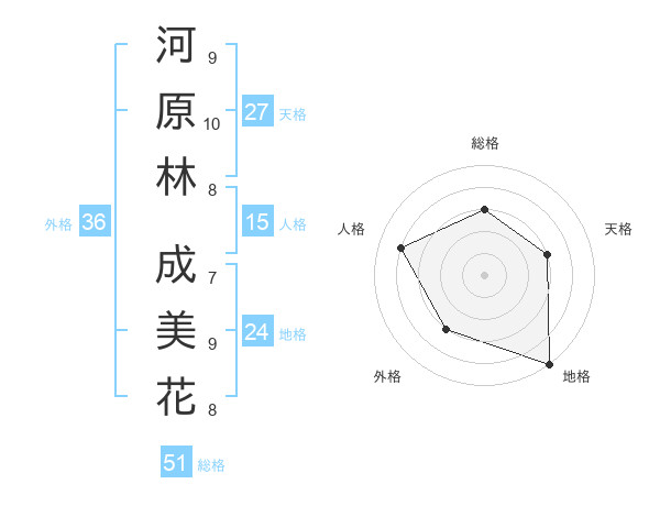 河原林 成美花さんを姓名の画数から五運を鑑定