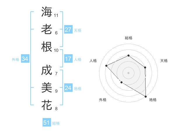 海老根 成美花さんを姓名の画数から五運を鑑定