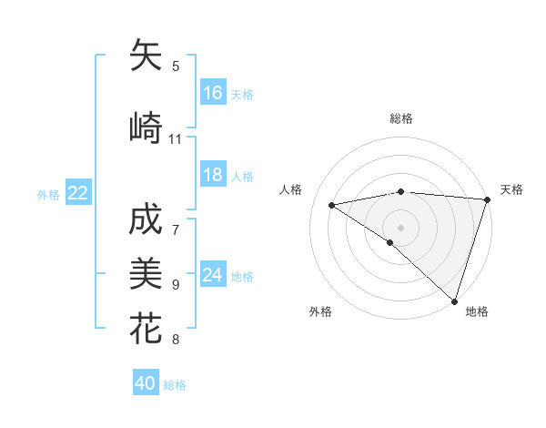 矢崎 成美花さんの地格は24画の5点!