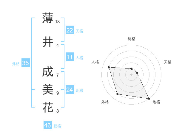 薄井 成美花さんの地格は24画の5点!