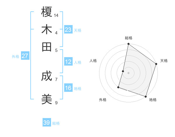 榎木田 成美さんを姓名の画数から五運を鑑定