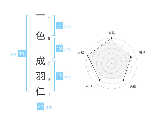 一色 成羽仁さんの総格は24画の5点!