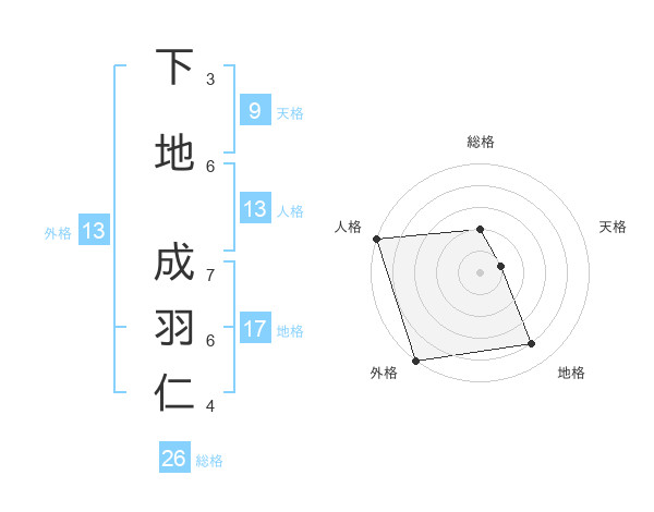 下地 成羽仁さんの外格は13画の5点!