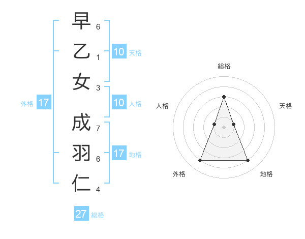 早乙女 成羽仁さんを姓名の画数から五運を鑑定