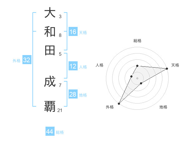 大和田 成覇さんを姓名の画数から五運を鑑定