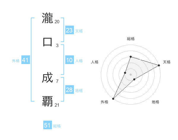 瀧口 成覇さんを姓名の画数から五運を鑑定