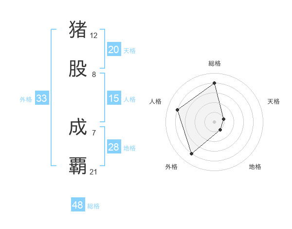 猪股 成覇さんを姓名の画数から五運を鑑定