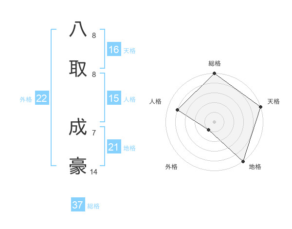 八取 成豪さんの総格は37画の5点!