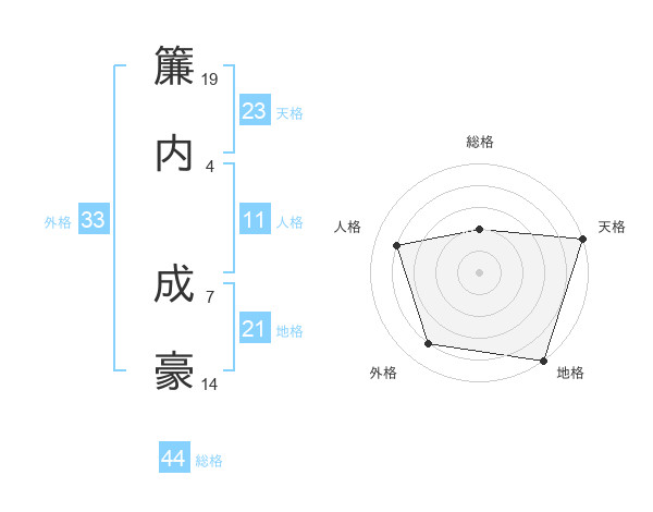 簾内 成豪さんを姓名の画数から五運を鑑定