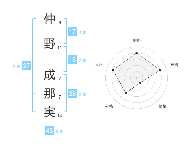 仲野 成那実さんを姓名の画数から五運を鑑定