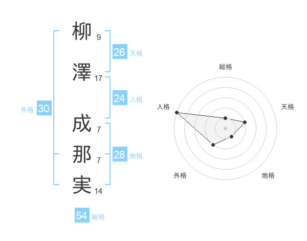 柳澤 成那実さんを姓名の画数から五運を鑑定