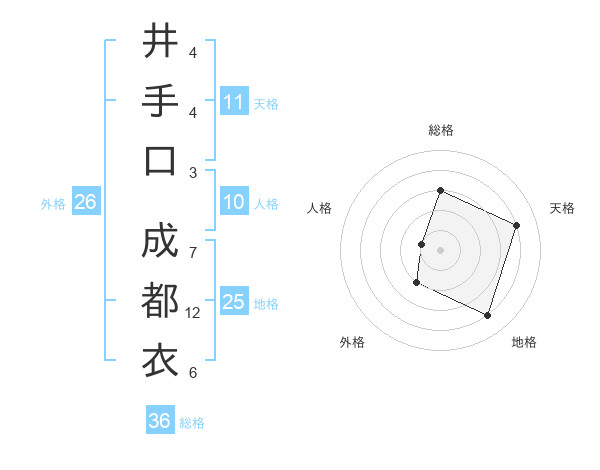 井手口 成都衣さんを姓名の画数から五運を鑑定