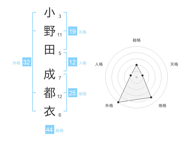 小野田 成都衣さんを姓名の画数から五運を鑑定