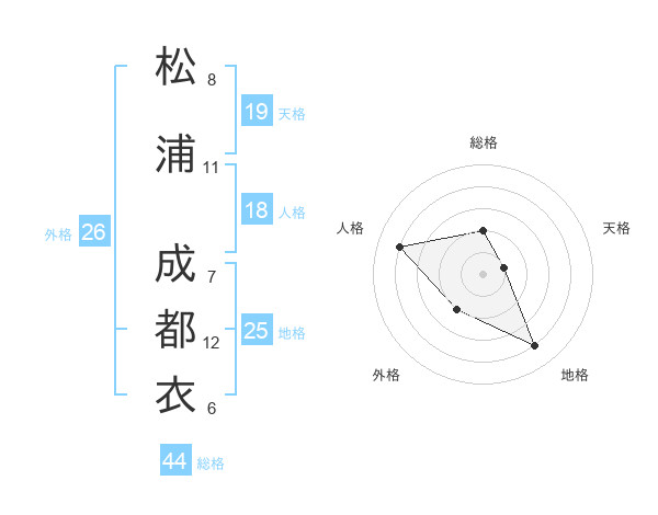松浦 成都衣さんを姓名の画数から五運を鑑定