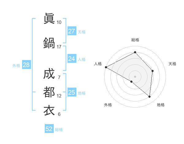 眞鍋 成都衣さんを姓名の画数から五運を鑑定
