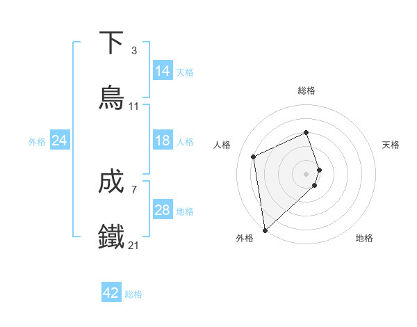 下鳥 成鐵さんを姓名の画数から五運を鑑定